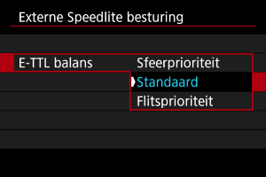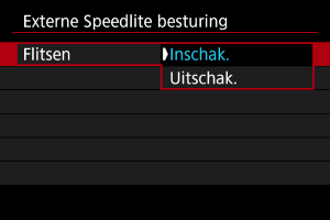 : Externe Speedlite besturing] op de camera. Stel deze direct in op de Speedlite.