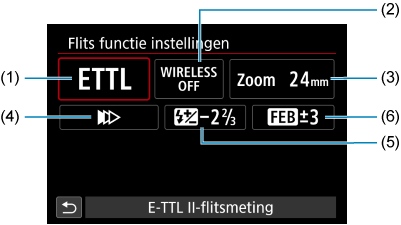 - Beschikbaar wanneer [Flitsmodus] is ingesteld op [E-TTL II-flitsmeting].