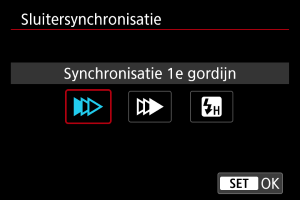 Stel deze optie normaliter in op [Synchronisatie 1e gordijn], zodat er direct na de opnamen wordt geflitst.