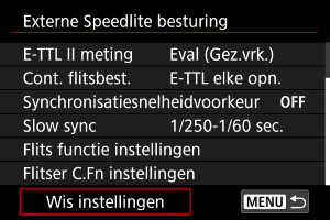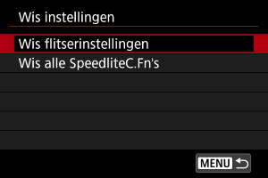 - Selecteer [Wis flitserinstellingen] of [Wis alle SpeedliteC.Fn's].