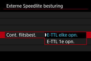 - Stel deze optie in op [E-TTL elke opn.] om voor elke opname een flitslichtmeting uit te voeren.