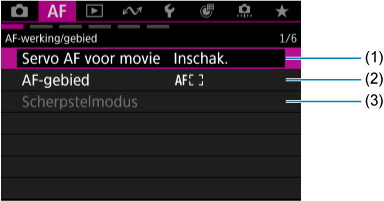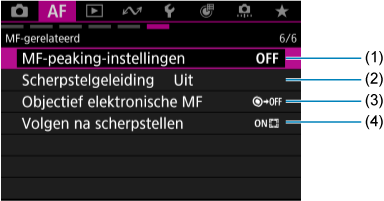 - [Scherpstelmodus] wordt weergegeven wanneer lenzen zonder scherpstelmodusknop zijn gebruikt.