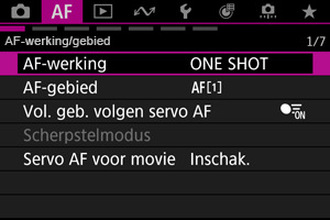 U kunt de eigenschappen selecteren voor de AF-werking die bij de opnameomstandigheden en het onderwerp passen.