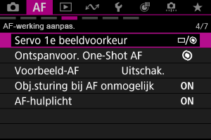 - Bij bepaalde lenzen wordt de snelheid mogelijk niet gewijzigd, zelfs niet wanneer u de AF-snelheid aanpast.