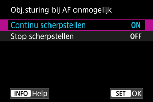 U kunt de lensbediening specificeren die van toepassing is wanneer automatisch scherpstellen op een onderwerp niet mogelijk is.