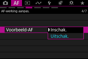 : Voorbeeld-AF] ingesteld op [Uitschak.]