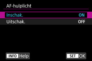 U kunt het AF-hulplicht van de camera of een Speedlite voor EOS-camera's in- of uitschakelen.