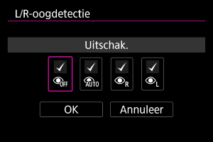 U kunt de beschikbare instellingsopties in [: Oogdetectie] beperken tot de opties van uw voorkeur. Selecteer een optie die u wilt uitsluiten en druk op