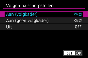 Zodra u stopt met draaien aan de scherpstelring, wordt op het scherpgestelde onderwerp een trackingkader [] weergegeven.