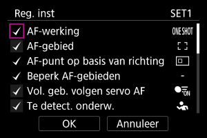 Selecteer de AF-instellingen die u wilt registreren.