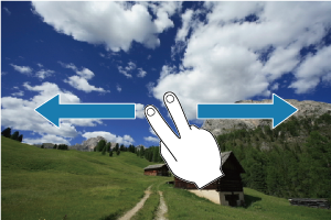 De camera beschikt over een touchscreen dat u kunt aanraken om het afspelen te bedienen. Ondersteunde aanraakhandelingen lijken op degene die gebruikt worden met smartphones en gelijksoortige apparaten. Druk eerst op de knop om afspelen via touchscreen voor te bereiden.