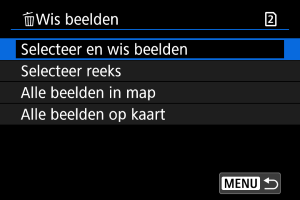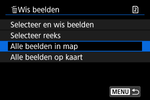 - Beelden wissen door het selecteren van [Alle beelden op kaart] geldt voor de kaart die is geselecteerd in [
