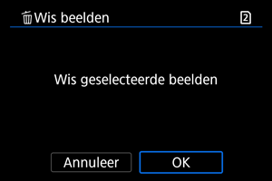 - Als u alle beelden, met inbegrip van beveiligde opnamen, wilt wissen, dient u de kaart te formatteren ().