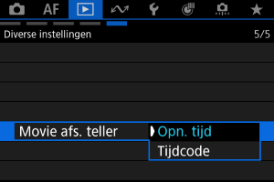 - De instelling [Movie afs. teller] in [