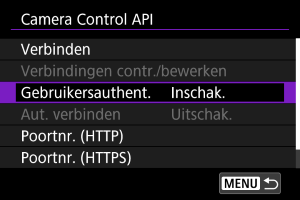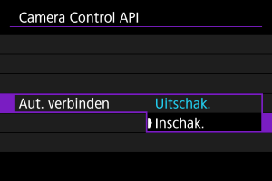 Door het selecteren van [Inschak.] wordt automatisch een verbinding gemaakt wanneer de camera de eerstvolgende keer opnieuw wordt opgestart.
