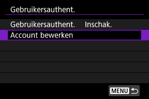- Als u [Inschak.] hebt geselecteerd, geeft u de [Gebruikersnaam] en het [Wachtwoord] op in [Account bewerken].
