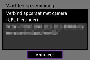 - Als het bovenstaande scherm op de camera verschijnt, gebruikt u de smartphone, computer of een ander apparaat om naar de aangegeven URL te gaan vanuit de applicatie die is ontwikkeld voor camerabediening.