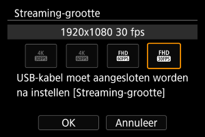 - [Aan] is niet beschikbaar als [Streaming-grootte] is ingesteld op [