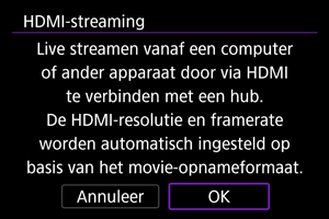 Selecteer deze optie als u met een HDMI-compatibel apparaat gaat streamen via een HDMI-verbinding.
