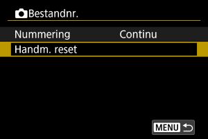 Voor het terugzetten van de bestandsnummering op 0001 of het beginnen met het bestandsnummer 0001 in een nieuwe map