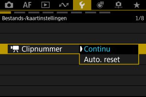 Aan de opgenomen video's die in een map zijn opgeslagen, wordt een clipnummer toegekend van 001 tot 999. U kunt de nummering van de clips wijzigen.