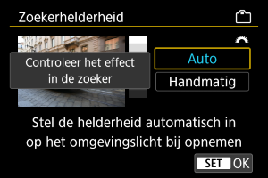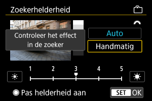 om de helderheid van de zoeker aan te passen en druk vervolgens op