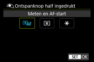 Geef de functie op die moet worden uitgevoerd wanneer u de ontspanknop half indrukt.
