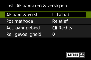 Selecteer [Inschak.] om AF aanraken en verslepen in te schakelen.