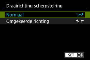 U kunt de richting waarin de scherpstelring van een RF-lens wordt gedraaid, omkeren om instellingen aan te passen.