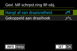 - Dit menu wordt niet weergegeven voor lenzen met een schakelaar voor scherpstel-/bedieningsring. Gebruik de lens voor de configuratie van scherpstel-/bedieningsring.