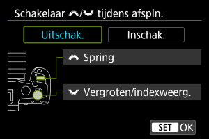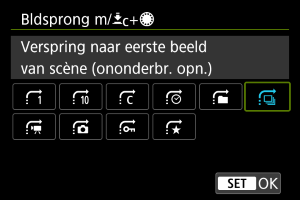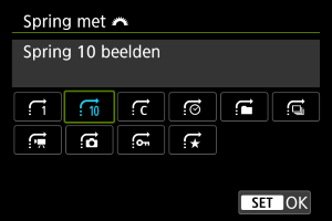 Als u wilt instellen hoe de camera door beelden springt, kunt u het instelwiel draaien terwijl u op de knop drukt die is toegewezen aan [