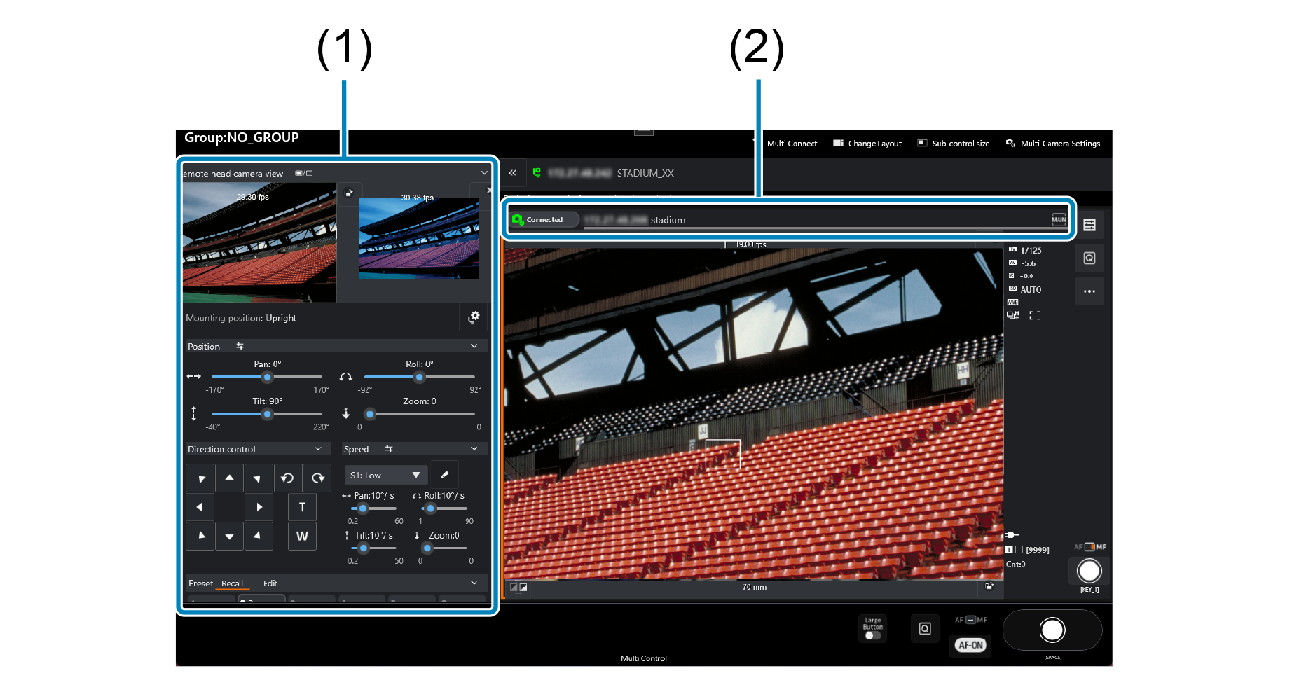 - (2) Display the connection status, IP address, and display name for the remote head.