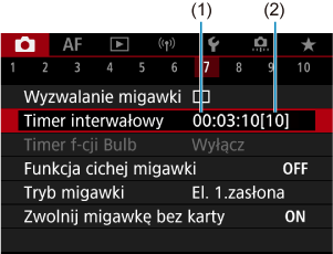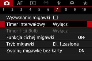 Ustawienia samowyzwalacza interwałowego będą wyświetlane ekranie menu.