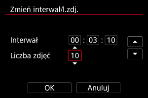 Ustaw interwał fotografowania i liczbę zdjęć.