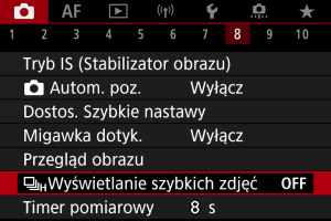 Szybkie wyświetlanie, które przełącza się między każdym ujęcie i widok live image są dostępne przy fotografowaniu w trybie wyzwalania migawki [] (szybka seria zdjęć) i tryb migawki jest inny niż migawka elektroniczna.