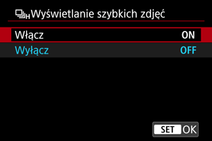 - Wybierz pozycję [Włącz] dla wyświetlacza, który przełącza się pomiędzy każdym zdjęciem i obrazem live.