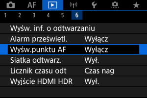 Można wyświetlić punkty AF użyte do ustawienia ostrości — będą one wyróżnione na czerwono na ekranie odtwarzania filmu.