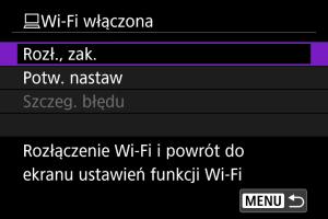 - Informacje na temat nawiązywania ponownego połączenia przez Wi-Fi znajdują się w rozdziale Ponowne łączenie za pomocą Wi-Fi/Bluetooth.