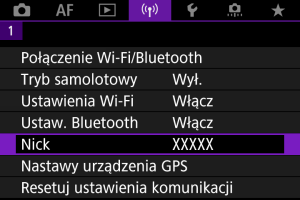 W razie potrzeby możesz zmienić nick aparatu (wyświetlany na smartfonach i innych aparatach).