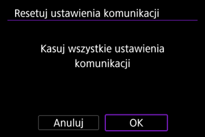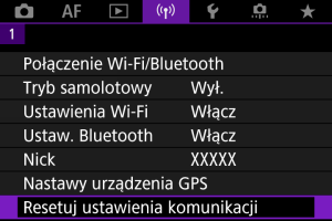 • Wszystkie ustawienia komunikacji bezprzewodowej zostaną usunięte po wybraniu opcji [Nastawy komunikacji] dla [Inne nastawy] w [Nastawy: Resetuj aparat].