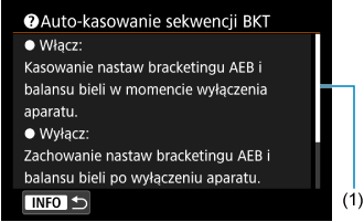 . Naciśnij przycisk ponownie, aby zakończyć wyświetlanie menu Pomoc. Aby przewinąć ekran po wyświetleniu paska przewijania (1) po prawej stronie, obróć pokrętło