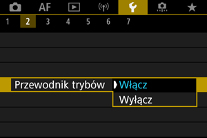 Podczas przełączania trybów fotografowania może być wyświetlany krótki opis aktualnie wybieranego trybu. Ustawieniem domyślnym jest [Włącz].