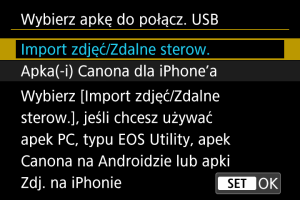 Wybierz jeśli zamierzasz skorzystać z EOS Utility po podłączeniu do komputera lub jeśli użyjesz dedykowanych aplikacji systemu Android lub aplikacji Photos w wersji na iOS.