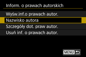 Jeśli w punkcie 2 została wybrana pozycja [Wyśw.inf.o prawach autor.], można sprawdzić informacje wprowadzone w pozycji [Autor] i [Prawa autorskie].