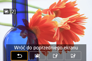 | Usuwa ostatni obraz wykonany aparatem (umożliwia zastąpienie go poprzez ponowne wykonanie zdjęcia). Liczba pozostałych ekspozycji zwiększy się o 1. | |