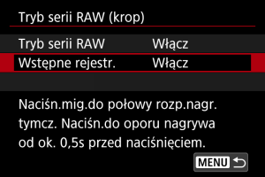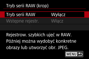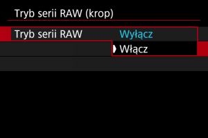 : Tryb serii RAW] przełącza się na [Wyłącz] kiedy przełącznik zasilania ustawiony zostaje na