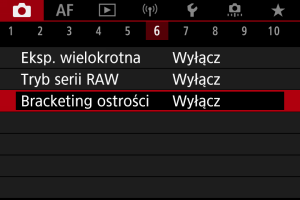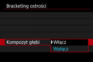 - Wybierz [Wyłącz], jeśli wolisz nie równoważyć zmian w jasności obrazu przy bracketingu ostrości. Użyj tej opcji do celów innych niż tworzenie głębi zarejestrowanych obrazów w aplikacjach takich jak DPP.