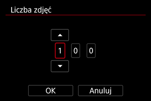 - Ustaw liczbę obrazów wykonanych podczas jednej rejestracji zdjęć.