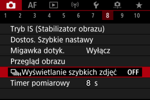 Szybkie wyświetlanie, które przełącza się między każdym ujęcie i widok live image są dostępne przy fotografowaniu w trybie wyzwalania migawki [] (szybka seria zdjęć) i tryb migawki jest inny niż migawka elektroniczna.