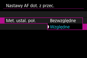 Punkt AF jest przesuwany w kierunku przeciągania o odległość odpowiadającą długości przeciągnięcia, bez względu na miejsce dotknięcia ekranu.